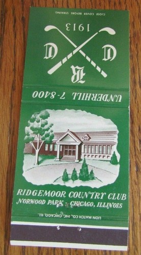 Golf Ridgemoor Country Club Chicago Illinois Size 30 Stick Matchbook F11 Ebay