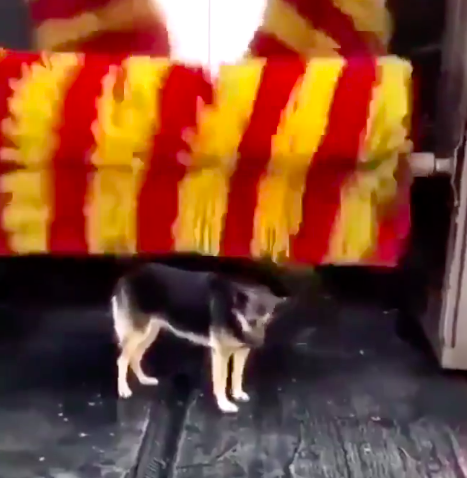 Stray Dog Regularly Visits Car Wash To Get Scrub And Back Rub
